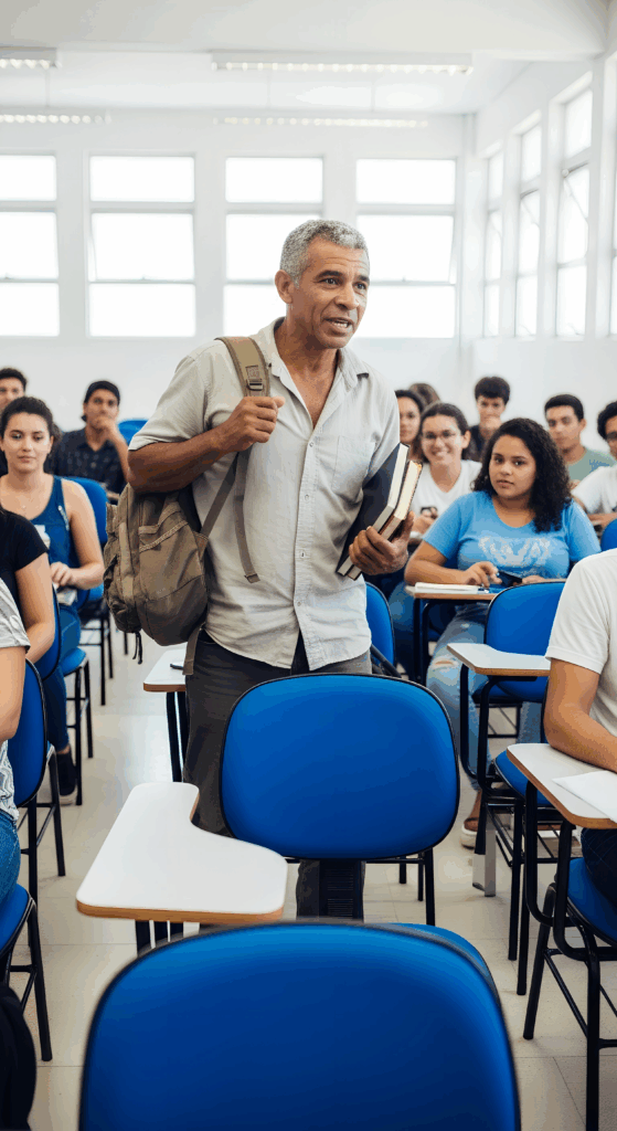 “Eu estava muito desanimada com o Instituto Superior Privado – muito mercantilizado, muito rifado, tudo muito barato. Na Feduc eu me vi numa outra realidade: formação de qualidade, trabalhando a questão da formação com profundidade, discussão com outros professores, estudo de metodologias”
